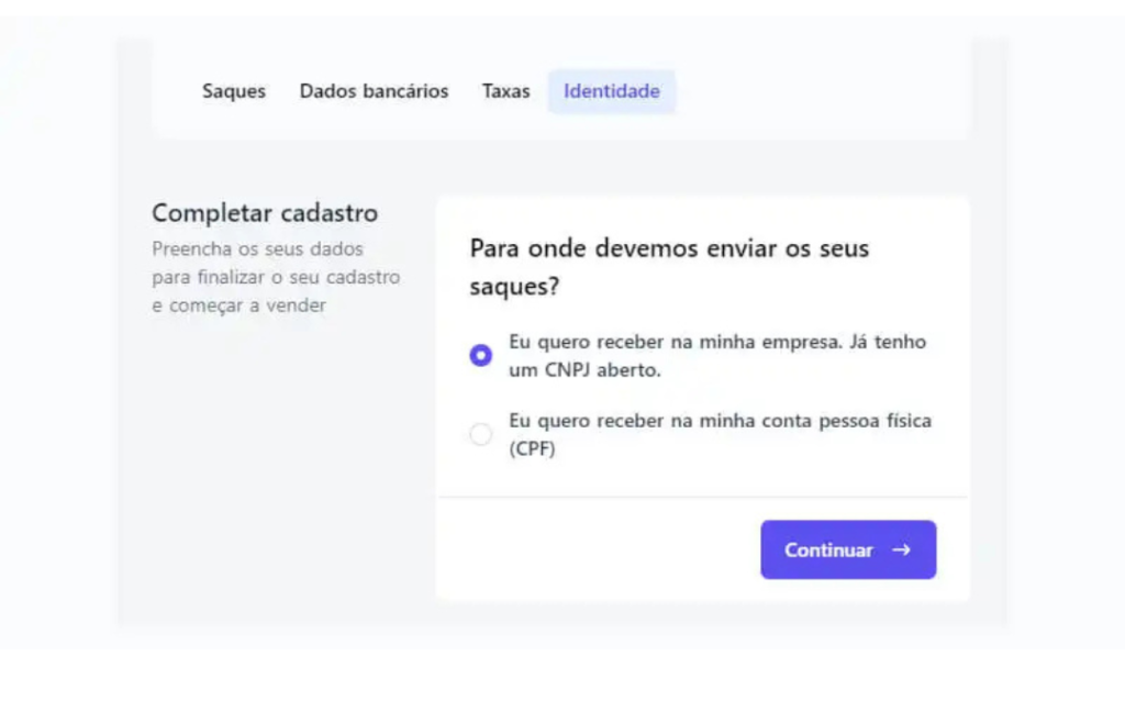 2- Next, to sell and create digital products, select the first option and click “Continue”;