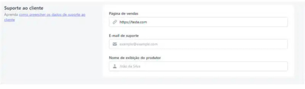 5- Finally, according to the URL of your product’s sales page, enter an email address that will be used to provide support to your customers, fill in the “Producer display name” field, and click “Save Product.”