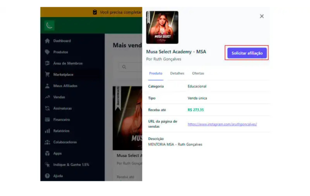 In addition to creating digital products, Kiwify also allows users to affiliate themselves with products from its marketplace to promote them in exchange for commissions. Here’s how to become an affiliate: